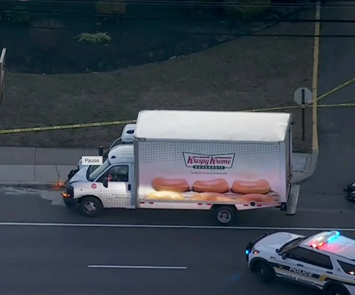 На видео с 6abc.com видно, что на месте происшествия остановился поврежденный грузовик Krispy Kreme. Женщина не была публично идентифицирована.