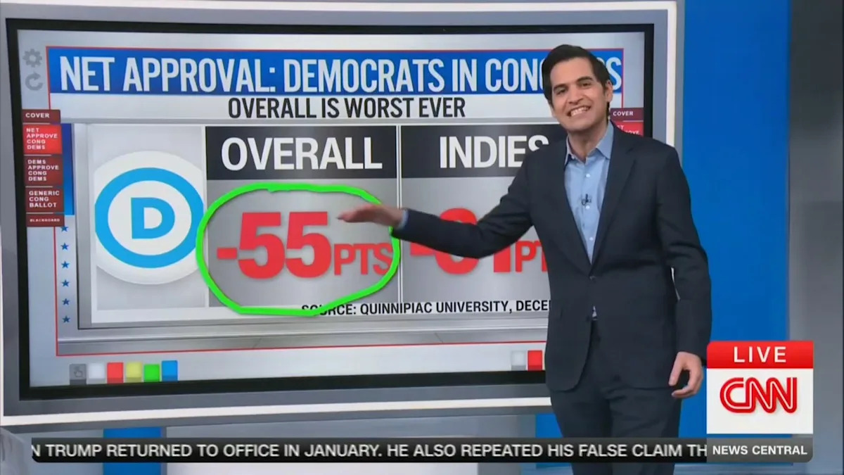 «55 баллов под водой!» — смеется в шоке Гарри Энтен из CNN, когда демократы в Конгрессе набирают рейтинги «Lowest Ever»