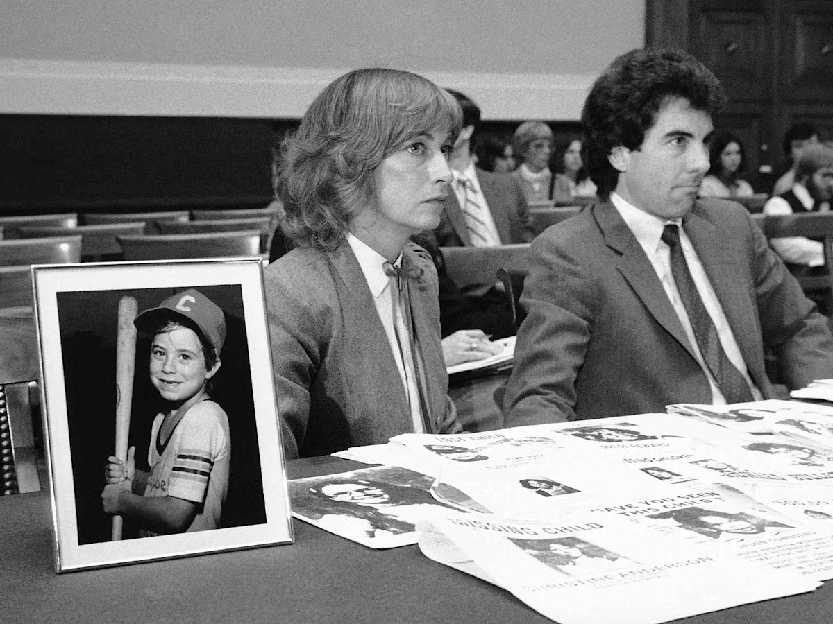 Джон и Реве Уолш вместе с фотографией их сына Адама предстают перед судебным подкомитетом Палаты представителей по пропавшим детям 18 ноября 1981 года в Вашингтоне, округ Колумбия.Прежде чем Джон Уолш стал ведущим «Самого разыскиваемого» в Америке, он был опустошенным отцом, отчаянно ищущим ответы на вопросы об исчезновении и последующем убийстве своего 6-летнего сына.