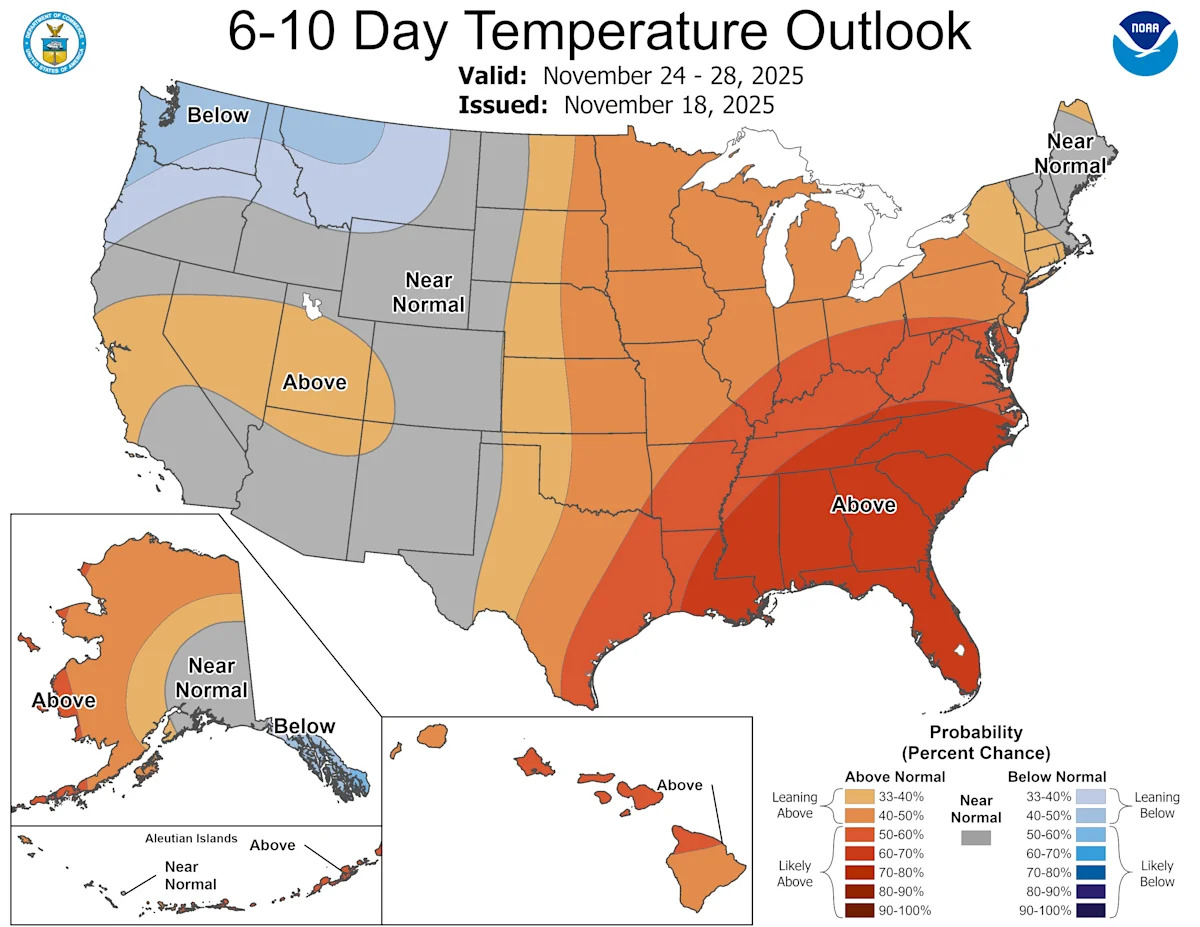 В отчете Национальной службы погоды за 7 дней прогнозируется частично солнечное небо с высокими температурами около 54. А осадки в Нью-Джерси на День благодарения составляют 30%.
