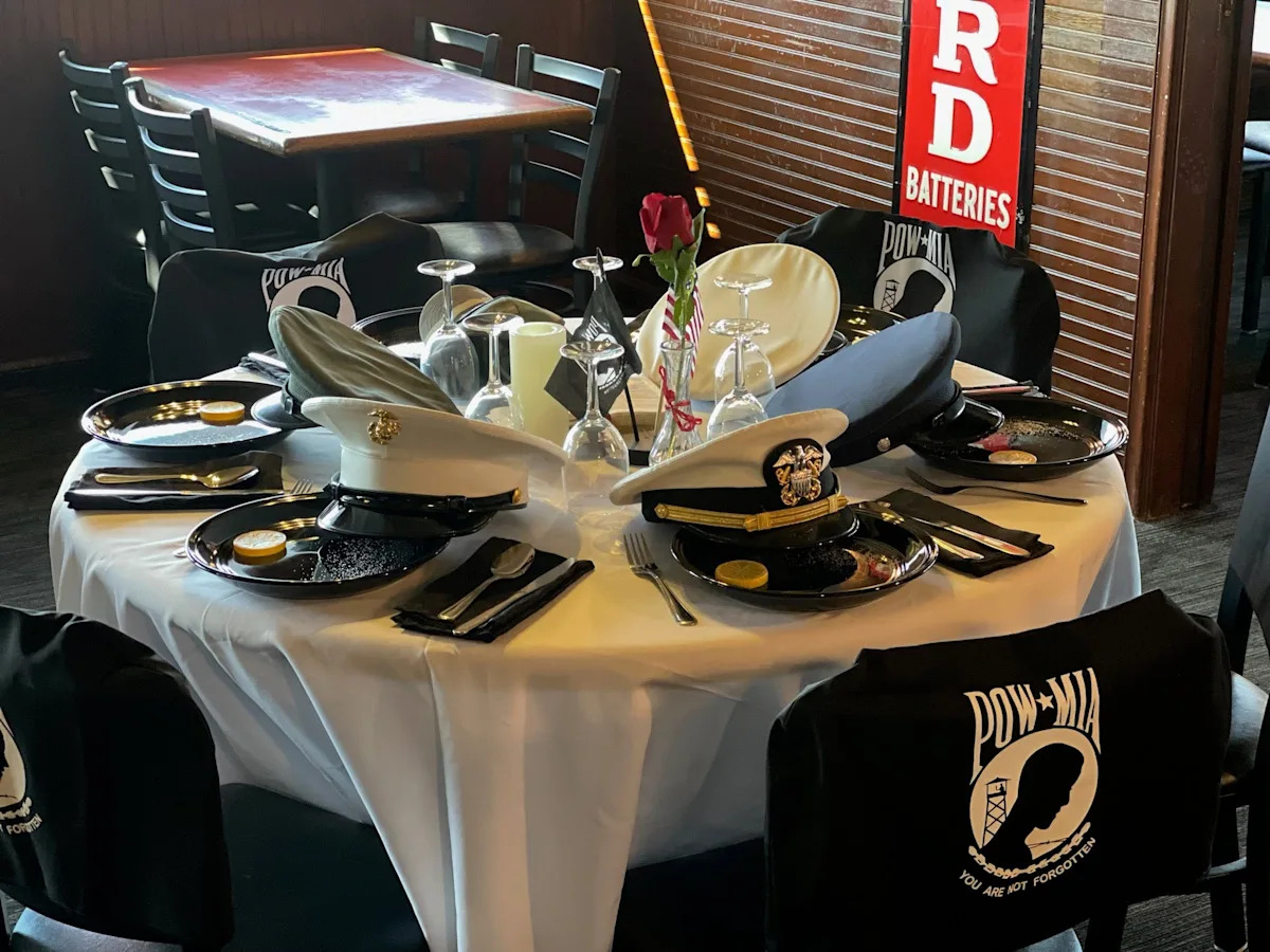 В течение последних 20 лет Ларри Пэйнтер, основатель ресторана и лаунджа Coachman в Плейнфилде, учредил «Стол пропавших без вести» каждый день ветеранов, а каждое подразделение вооруженных сил США представляло собой шляпу и место.