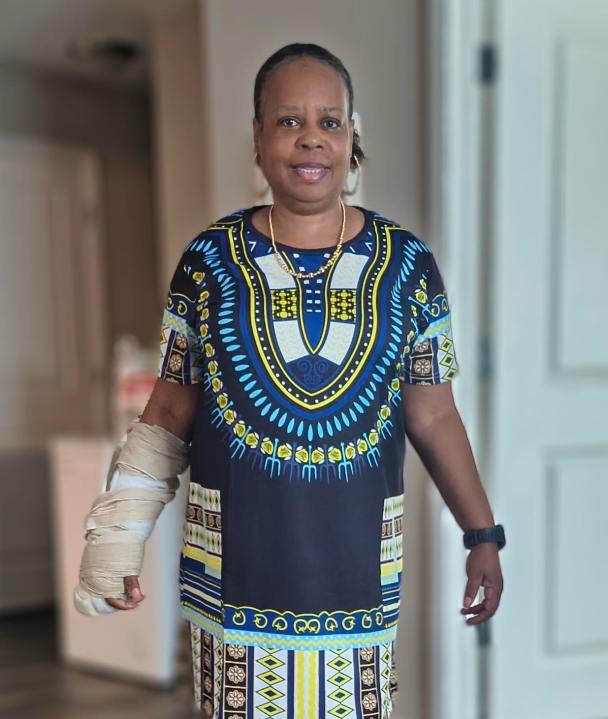 Офис шерифа предоставил эту фотографию Вудард, но сказал, что у нее нет гипсовой на руке.