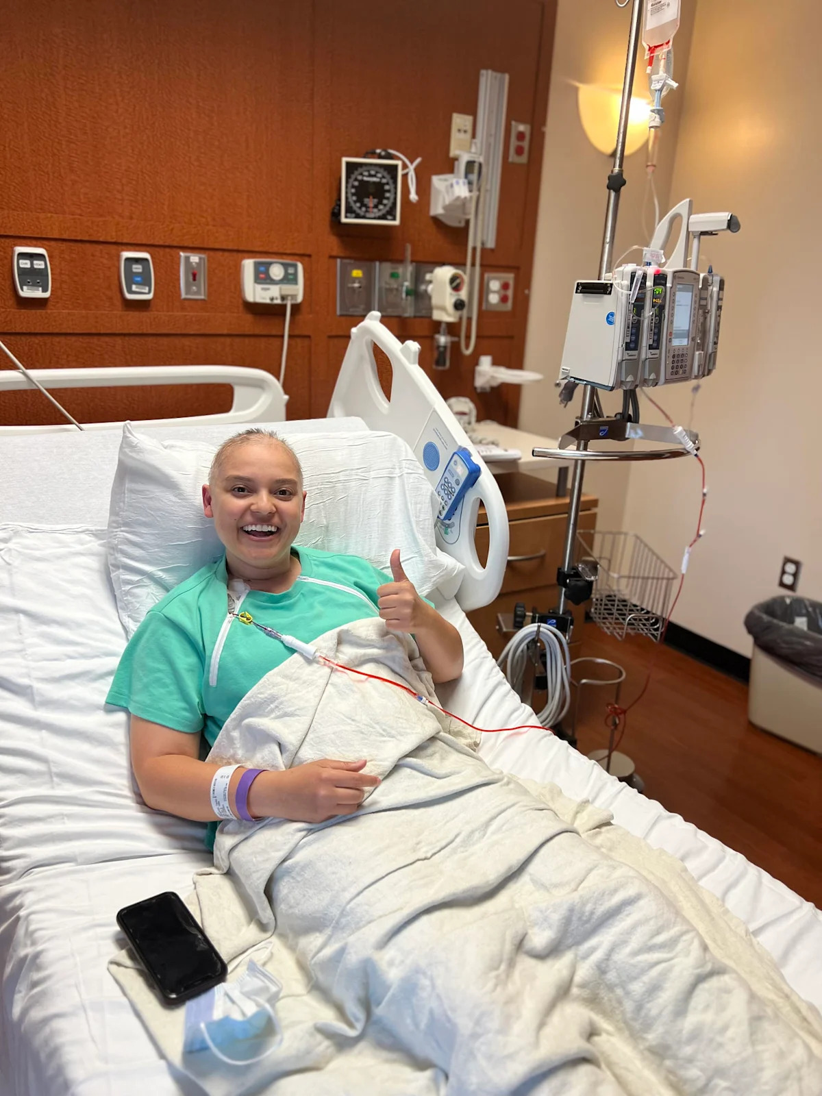 В течение пяти месяцев она прошла 16 раундов химиотерапии, известной как «красный дьявол», доксорубицин.