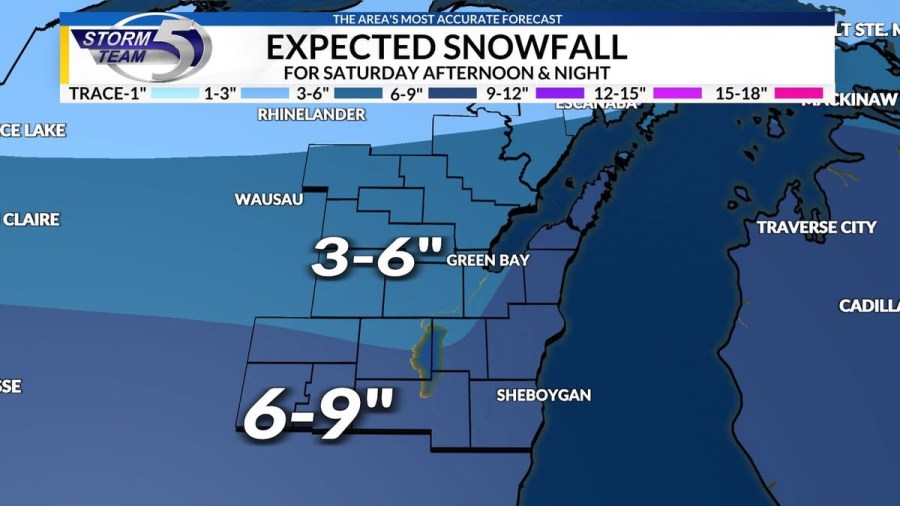 Общий снег 3-6′′ ожидается для Грин-Бей и района Фокс-Вэлли.