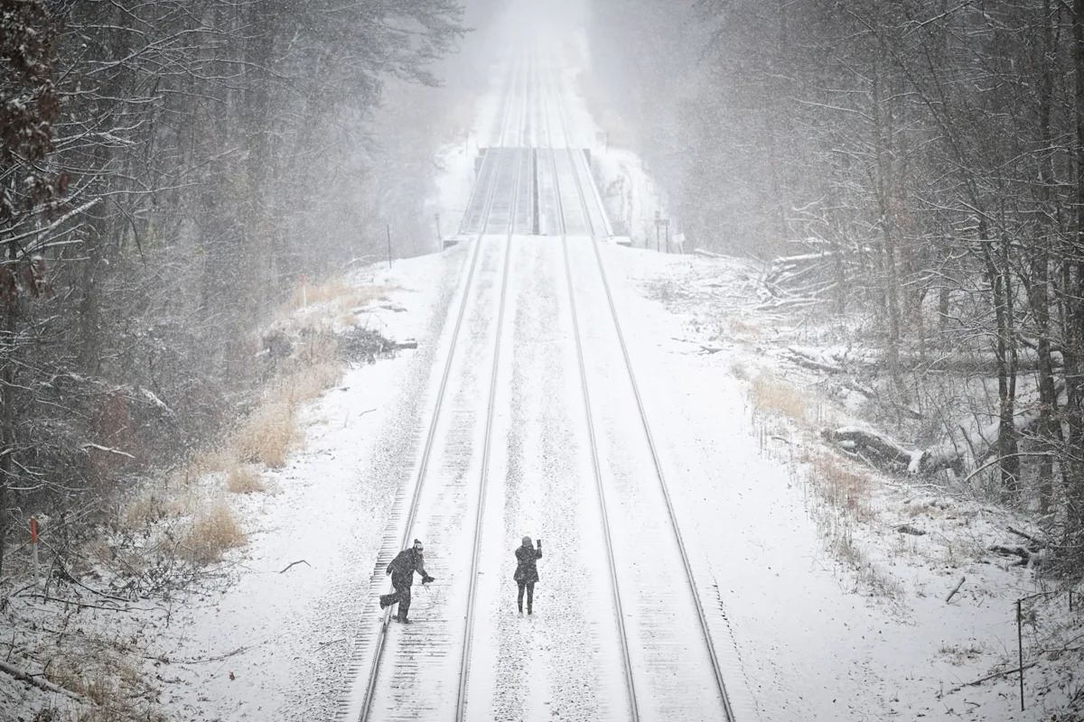 После выходных снега на Среднем Западе зимняя погода в понедельник сосредоточена дальше на юг, снег обрушивается на Вирджинию, Западную Вирджинию и Северную Каролину, а Тихоокеанский Северо-Запад готовится к атмосферной реке, которая принесет опасное наводнение.