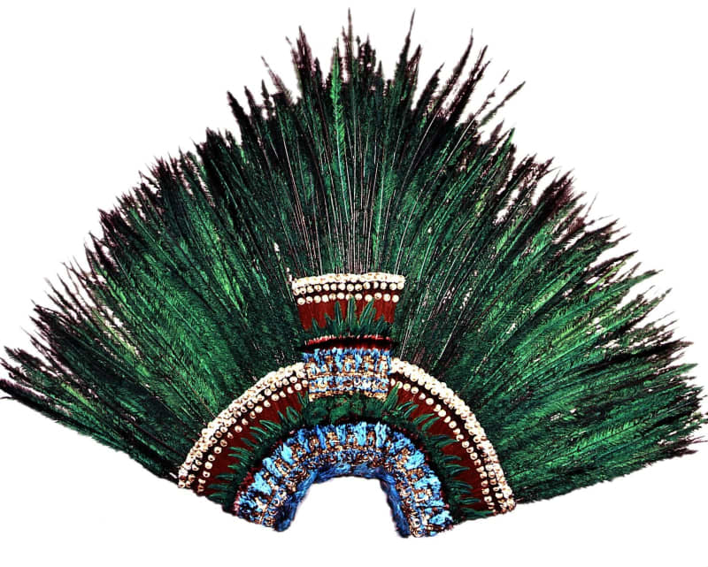 В мезоамериканском мире высоко ценилась перьевая работа, не только украшавшая головные уборы, но и одежду, оружие и другие аксессуары, обычно ассоциируемые с правителями, богами и воинами.Некоторые перья, говорят, имели большую ценность, чем золото.