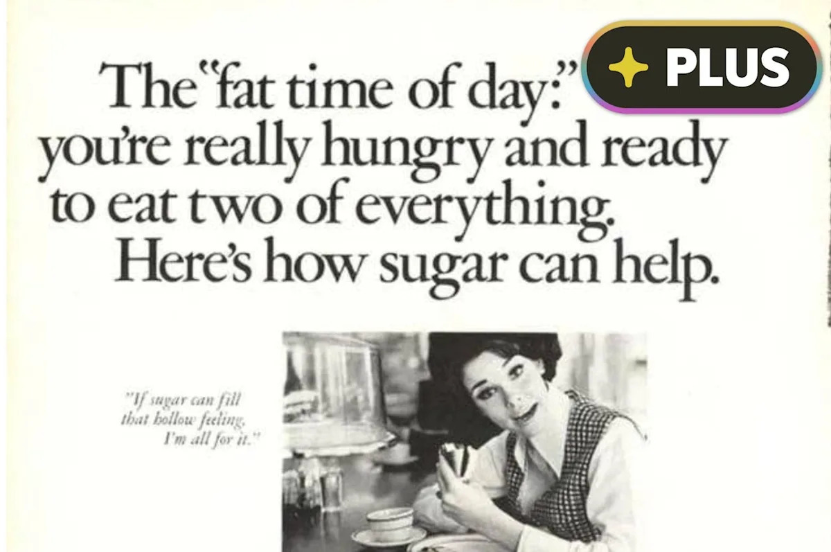 Видимо, это объявление было частью кампании по убеждению людей в диетической пользе сахара. Почему? Ну, искусственные подсластители были на подъеме, а сахар был связан с диабетом и ожирением в новых исследованиях. Так почему бы не попытаться убедить людей, что сахар действительно полезен для вас, и может помочь вам похудеть?