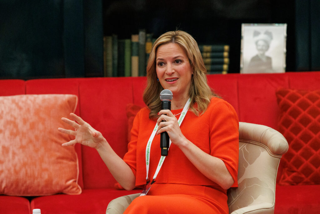 Госсекретарь Джоселин Бенсон, кандидат от Демократической партии на пост губернатора, выступает во время панели, рекламирующей ее книгу в Гранд-отеле на острове Макинак, штат Мичиган, 28 мая 2025 года, во второй день Конференции по политике Макинака.