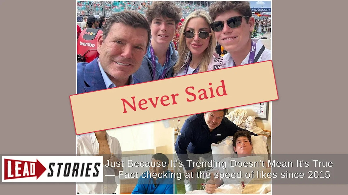 Брет Байер объявил, что он «прекратит все лечение» для своего сына Пола? Нет, это неправда: представитель FOX News сказал Lead Stories, что это утверждение ложно. Байер не сделал такого заявления, что решил «прекратить все лечение» для своего сына Пола, который родился с пятью врожденными пороками сердца и перенес экстренную операцию на открытом сердце в 2024 году. История, с поддельного новостного сайта, была продвинута на странице Facebook, управляемой из Вьетнама, Бангладеш и Мьянмы.