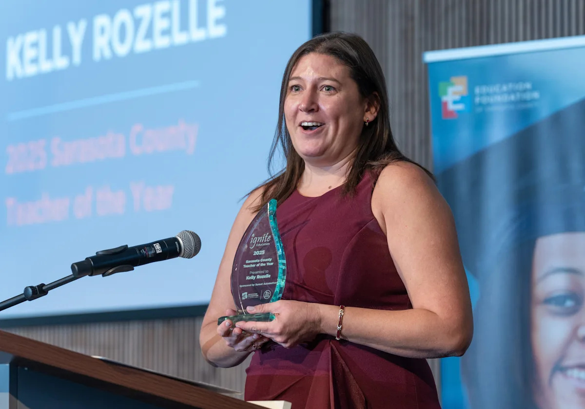 В прошлом году, когда суперинтендант Терри Коннор вручил Келли Розелл букет цветов и объявил ее финалисткой «Учителя года», учительница венецианской средней школы могла только покачать головой и сказать: «Я в полном шоке». Она все еще обрабатывала все это, когда всего несколько недель спустя она была названа учителем года в школах округа Сарасота на церемонии «Воспитание Игнита».