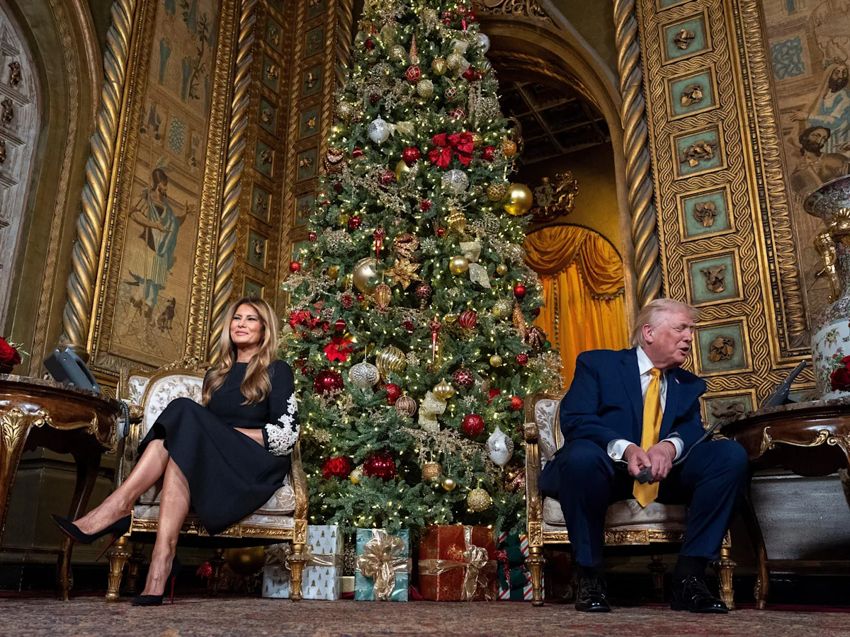 Президент Дональд Трамп и первая леди Мелания Трамп проводят Рождество в Мар-а-Лаго во Флориде.