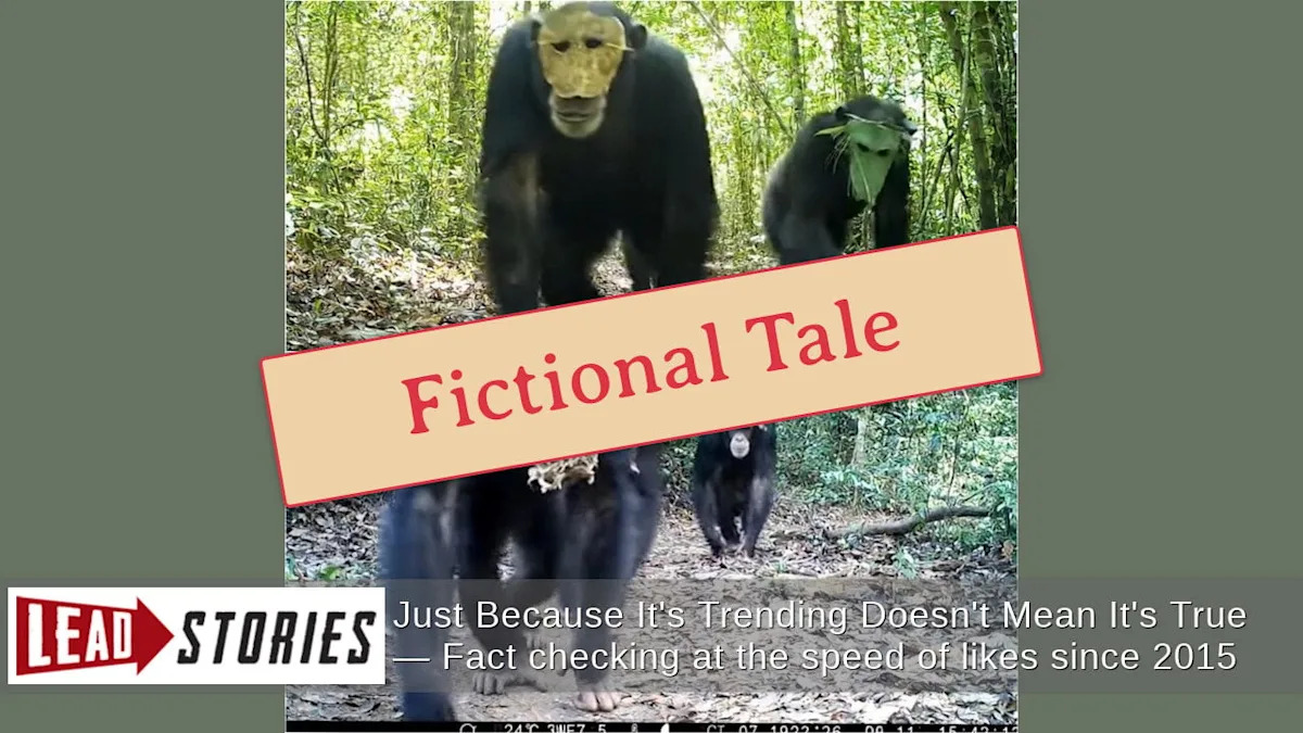Обнаружили ли исследователи шокирующее проявление интеллекта приматов, когда группа шимпанзе в Конго начала носить маски, чтобы скрыть свои лица, когда они совершали набеги на местные рынки? Нет, это неправда: эта история появилась спонтанно в социальных сетях из аккаунта с оговоркой «рассказ (существительное) — рассказ о воображаемых или реальных людях и событиях, рассказанных для развлечения». Нет никаких научных отчетов, которые соответствовали бы этому утверждению, а изображения, включенные в историю, появлялись только в дубликатах постов в социальных сетях в паре с рассказом.
