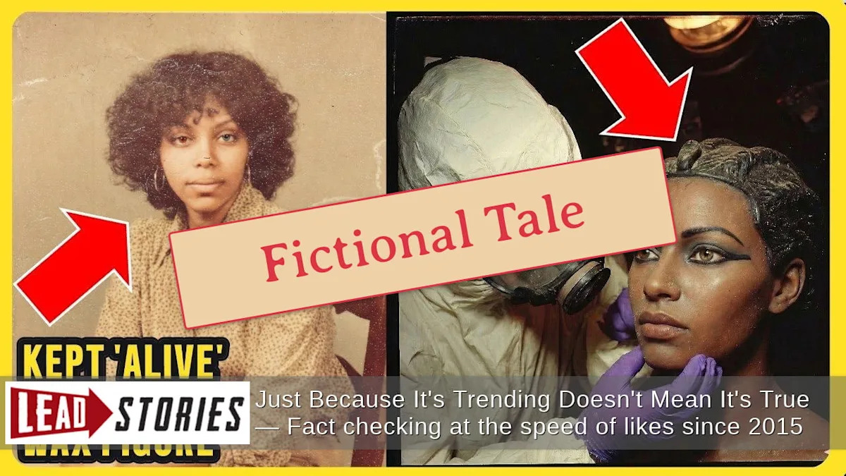 Разве детектив из Чарльстона Винсент Хейс раскрыл дело, узнав лицо пропавшей женщины Аалии Портер в восковой фигуре на гала-концерте? Нет, это неправда: эта история — просто еще одна сфабрикованная история с канала YouTube, которая риффует на таинственную тему, где мертвые тела спрятаны на виду как медицинские модели, куклы, манекены и восковые фигуры. Нет никаких записей о полицейском детективе Чарльстона по имени Винсент Хейс или жертве преступления Аалии Портер, которая умерла 12 августа 1994 года — эта история — выдумка.