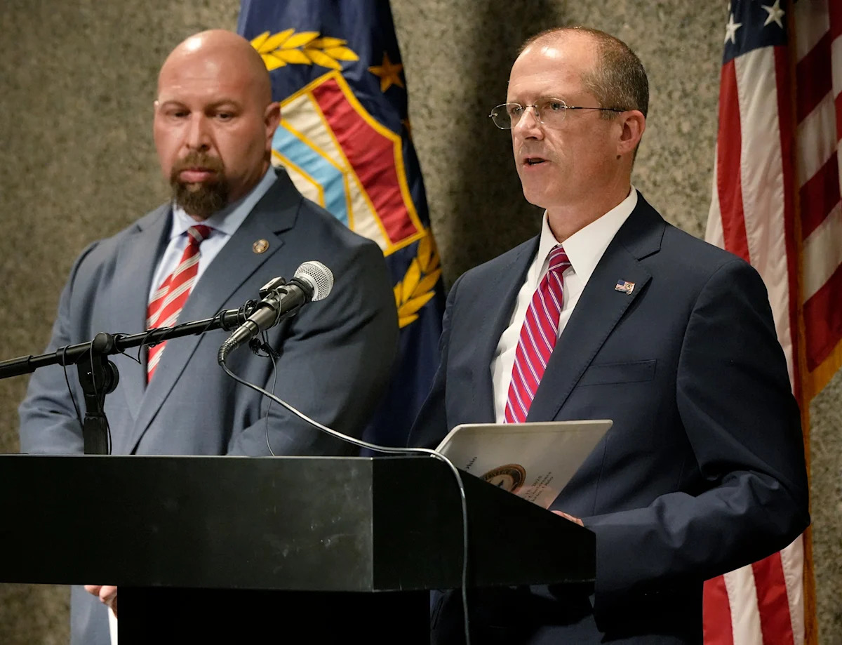Правоохранительные органы представили доску из 39 кружек. На многих фотографиях слово «арестован» было напечатано красным цветом на кружках. Из 39 человек, перечисленных на доске, у трех не было красной этикетки.