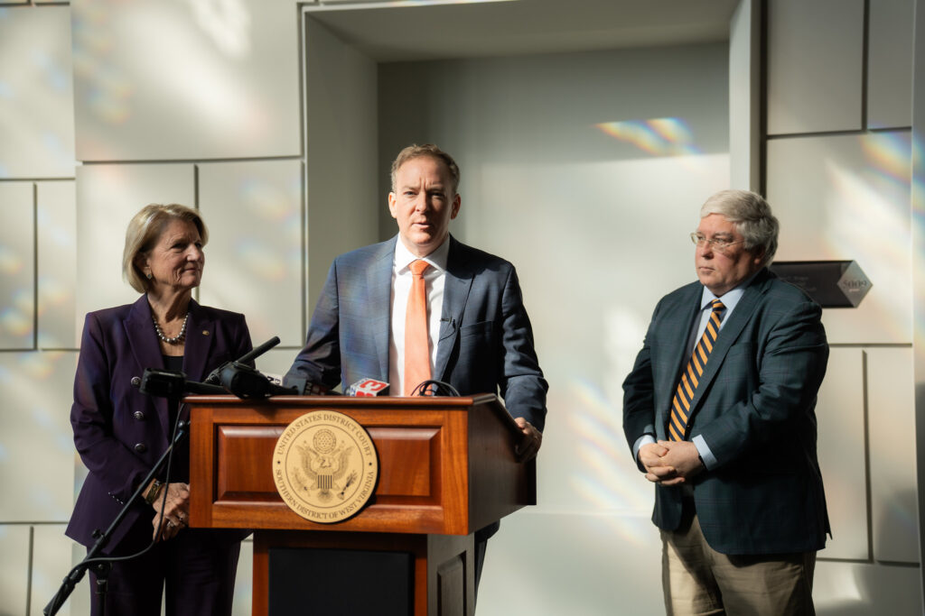 Губернатор Патрик Моррисси выступает перед зданием суда Роберта С. Берда в Чарльстоне, Западная Вирджиния, в среду, 12 ноября 2025 года. (фото любезно предоставлено офисом губернатора Западной Вирджинии Патрика Моррисси)