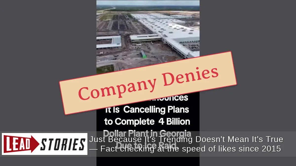 Hyundai сделала объявление о том, что она отменяет свой завод по производству аккумуляторов на 4 миллиарда долларов в Грузии после рейда, когда иммиграционная и таможенная служба США задержала 475 рабочих 4 сентября 2025 года? Нет, это неправда: нет никакого влияния на операции по производству автомобилей в США после рейда ICE, — сказал представитель компании Lead Stories. — Президент и генеральный директор Hyundai поговорили с журналистами 11 сентября 2025 года и сказали, что будет двух-трехмесячная задержка в запуске совместного предприятия по производству аккумуляторов, но не сказали, что компания отменяет этот завод. Hyundai сказал, что он продолжает инвестировать в американское производство и создавать тысячи рабочих мест в заявлении на своем веб-сайте после рейда. Не было никаких реальных новостей о том, что Hyundai отменяет проект.