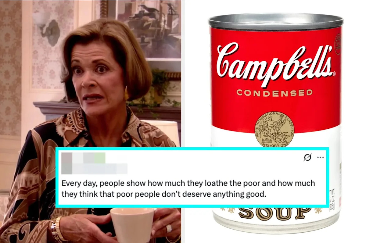 Для любой компании было бы вредно иметь комментарии, подобные этой поверхности, но время делает его жалить еще больше. Многие семьи уже имеют дело с отсутствием продовольственной безопасности, и кладовые супы, такие как суп Кэмпбелла, часто являются тем, на что люди полагаются, когда деньги ограничены. И с приближающимися праздниками — когда такие предметы, как крем из грибного супа, необходимы для блюд, таких как запеканка из зеленых бобов — слышишь, как исполнительный издеваются над продуктами, и люди, которые их используют, приземлились особенно тяжело.