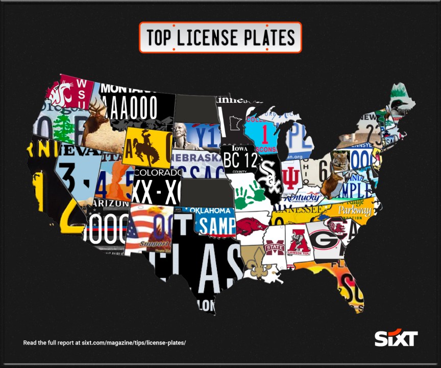 Карта лучших номерных знаков для каждого штата в США, любезно: Sixt
