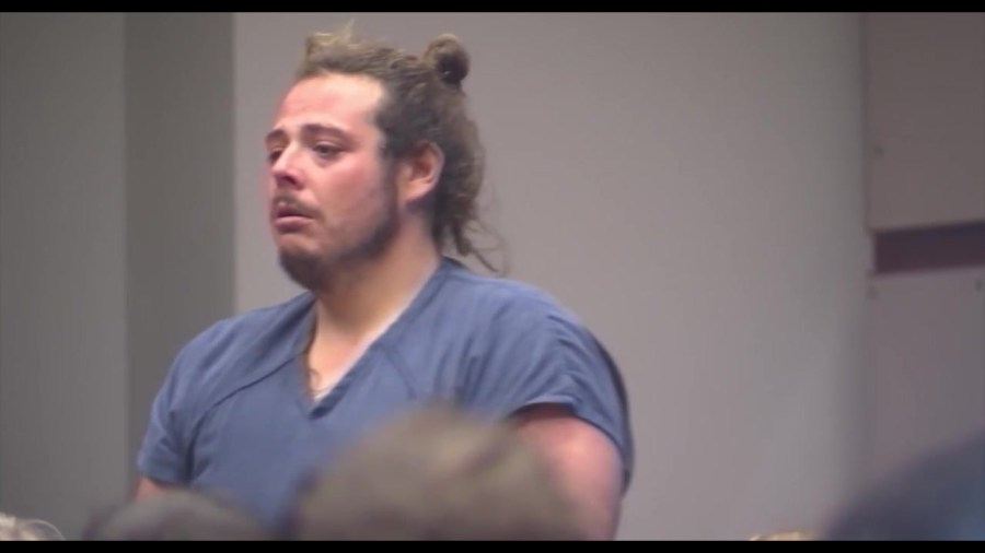 30-летний Джейкоб Кросс плакал, когда он вошел в зал суда сегодня за его обвинение в центре Мобил.