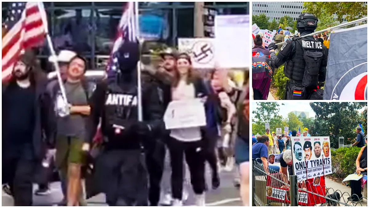 Насилие вспыхивает на митинге «Нет королей» в Далласе, когда члены Антифа сталкиваются с сторонниками Трампа