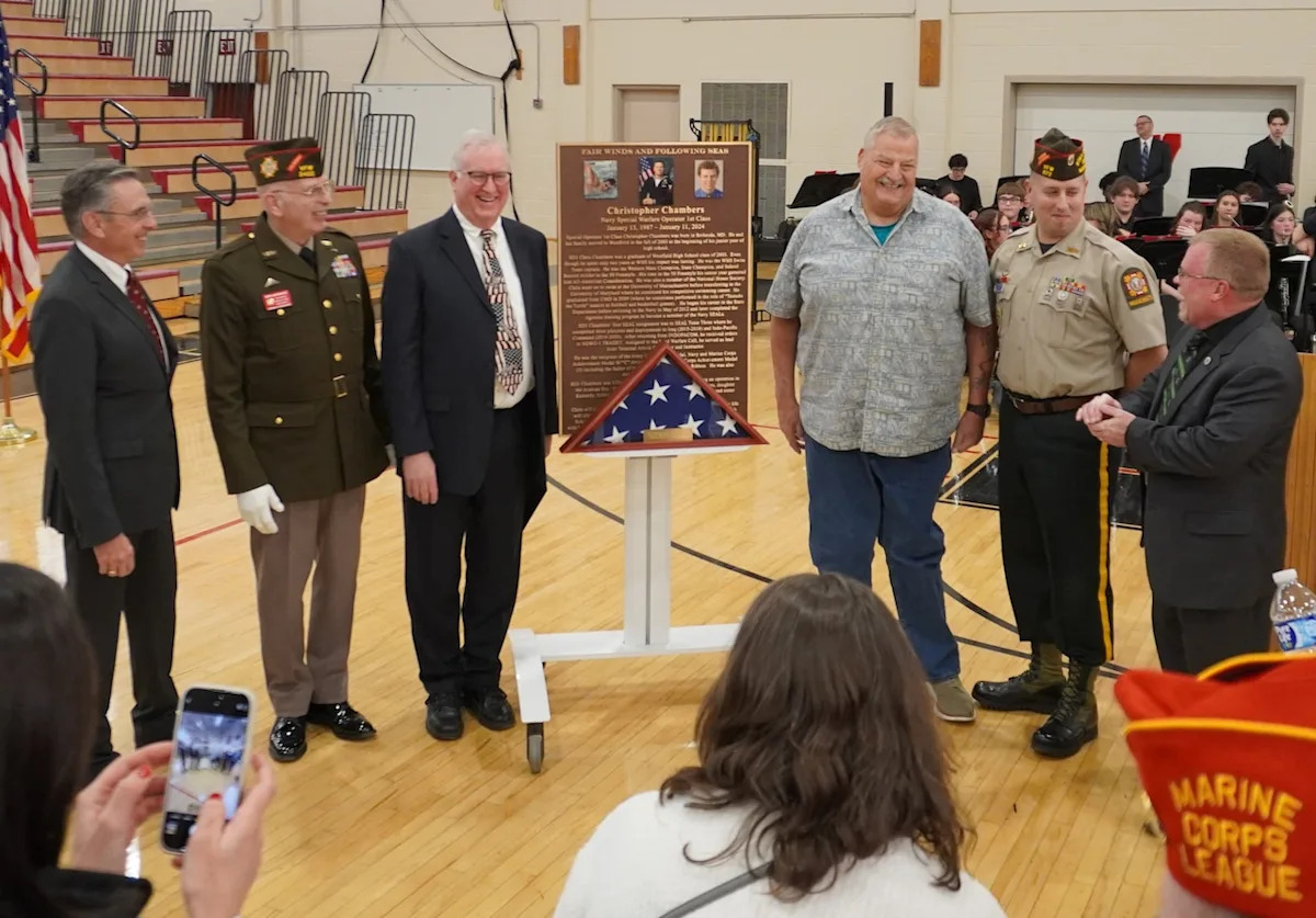 11 декабря более тысячи студентов, большинство из которых были одеты в черное, собрались вместе с учителями, администраторами, городскими и государственными чиновниками и военнослужащими в гимназии средней школы Уэстфилда, чтобы почтить память выпускника ВМС США Кристофера Чемберса, который умер, защищая Соединенные Штаты Америки во время военной операции в январе 2024 года.