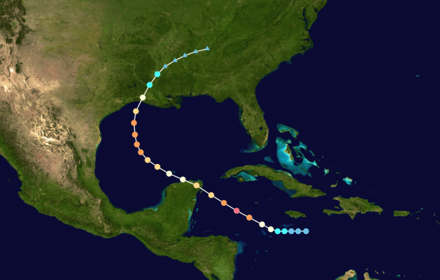 Ураган Дельта трек — Национальный центр ураганов После достижения статуса 4-й категории, он перешел через полуостров Юкатан, что ослабило его до категории 2.После ухода с полуострова Юкатан, он переместился в теплые воды залива, где прошел второй раунд быстрой интенсификации, снова достигнув статуса 4-й категории.