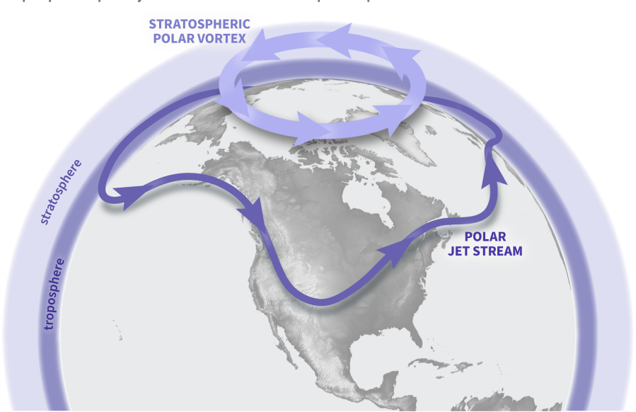 В то же время ослабленный, растянутый полярный вихрь помогает вытеснить холодный воздух на юг из Канады, а не держать его запертым вблизи полюса.