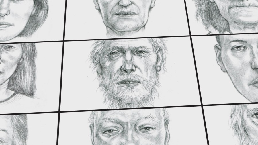 Сотрудники предоставили 8 News Now Investigators 10 рисунков. Каждый рисунок включает номер дела и информацию, известную о человеке.