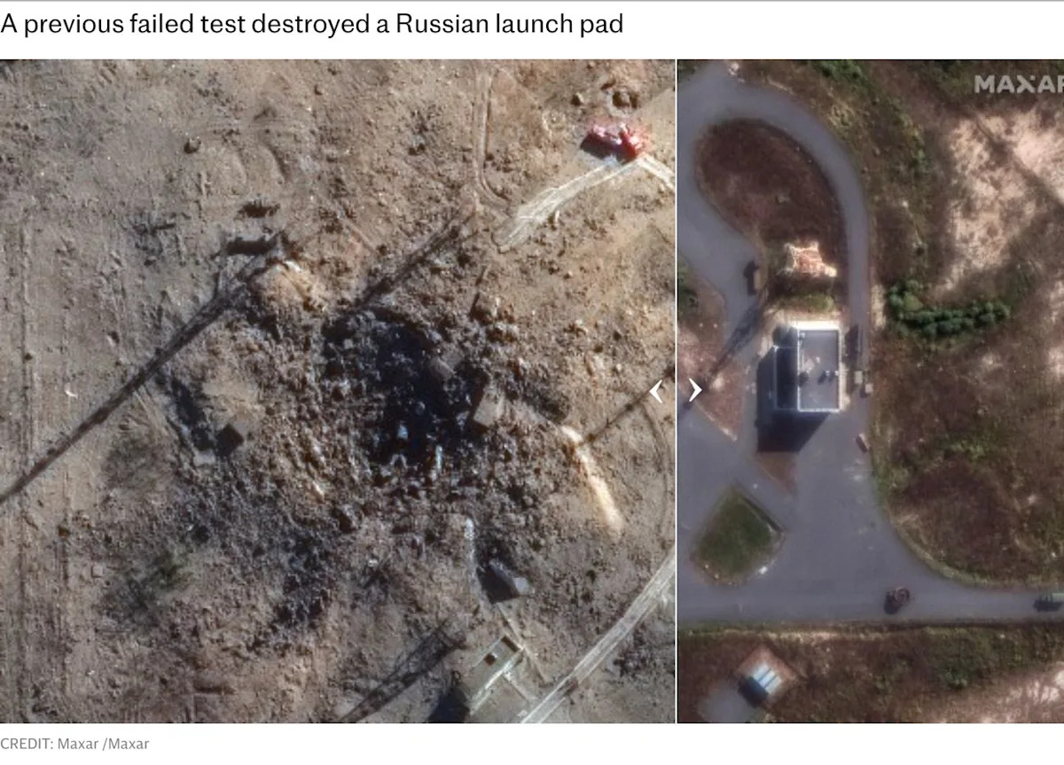 Во время предыдущего испытательного запуска боеприпас взорвался на космодроме Плесецк в 500 милях к северу от Москвы в сентябре 2024 года, оставив огромный кратер на месте запуска.