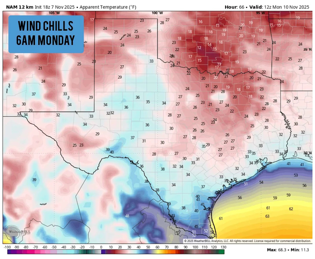 Сегодня вечером на холодном фронте, Южный Техас готовится к 50-градусному падению.