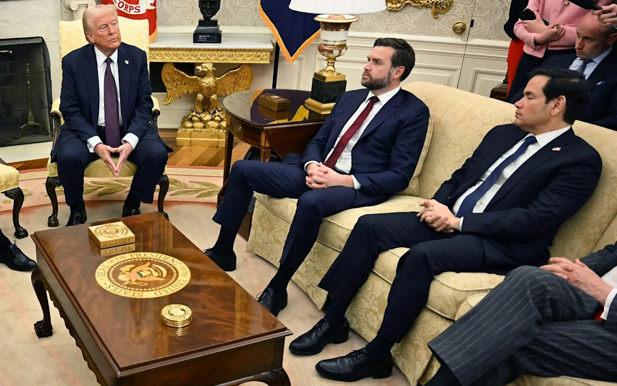 Президент Трамп посмотрел на «Решительный стол» вице-президента Вэнса и секретаря Марко Рубио и сказал: «У вас, ребята, дерьмовая обувь».