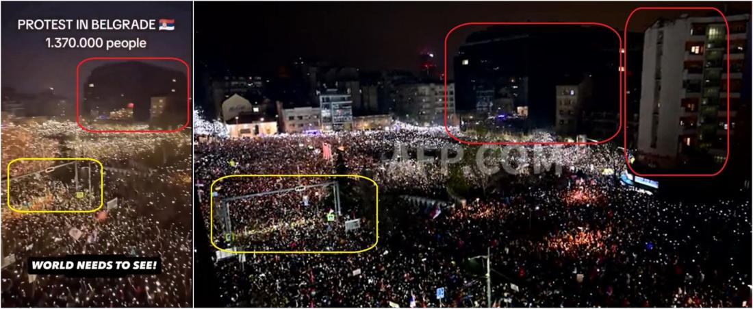 На протяжении 2025 года сербы участвовали в массовых демонстрациях против взяточничества. Протесты не связаны с религией, но видео, показывающее большой митинг в Белграде, было искажено как таковое в сообщениях в социальных сетях на нескольких языках перед Рождеством. Клип на самом деле изображает протест студентов с марта, осуждающий коррупцию правительства после смертельной аварии на недавно отремонтированном железнодорожном вокзале.