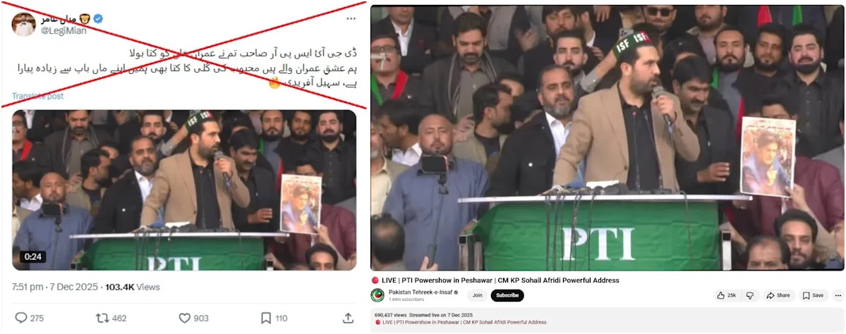 Видео Сохайла Хана Африди, главного министра Пакистана провинции Хайбер-Пахтунхва, было просмотрено более 100 000 раз после того, как оно было опубликовано на X 7 декабря 2025 года.