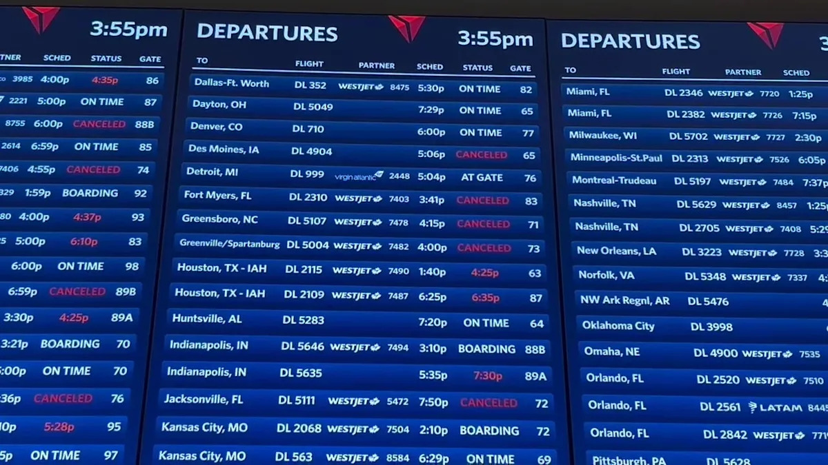 Например, на фото ниже представлена информация о задержке наземного движения в международном аэропорту Бостон Логан 19 декабря 2025 года.