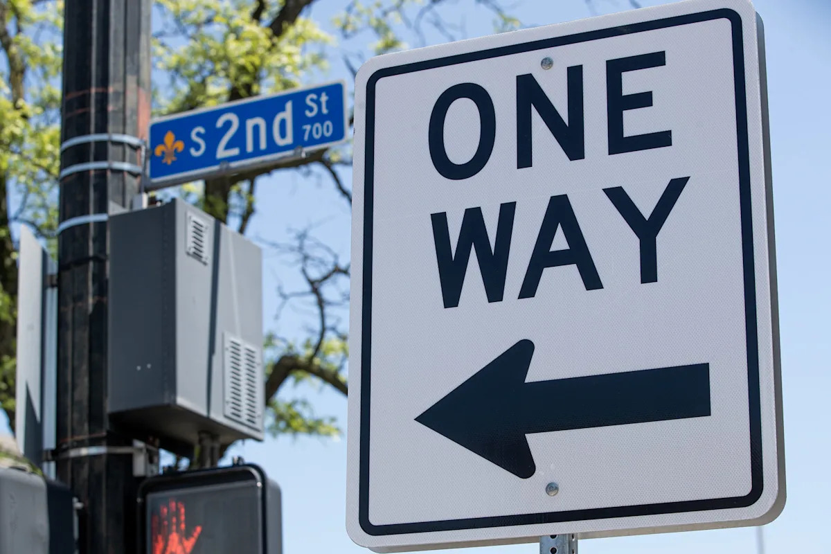 В центре Луисвилля есть несколько перекрестков, где встречаются пары односторонних улиц, хотя ожидается, что число таких перекрестков постепенно уменьшится, поскольку городские чиновники работают над преобразованием односторонних улиц в двусторонние.