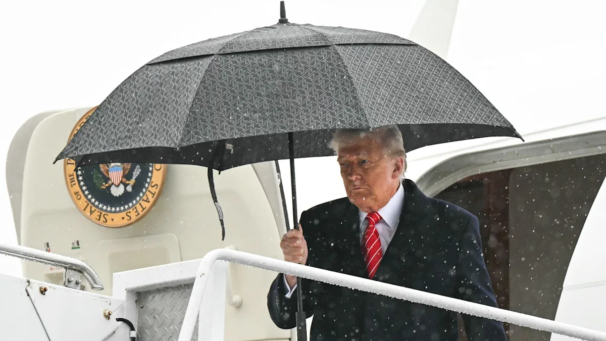 Президент Дональд Трамп прошел один раунд с большим черным зонтиком и проиграл.