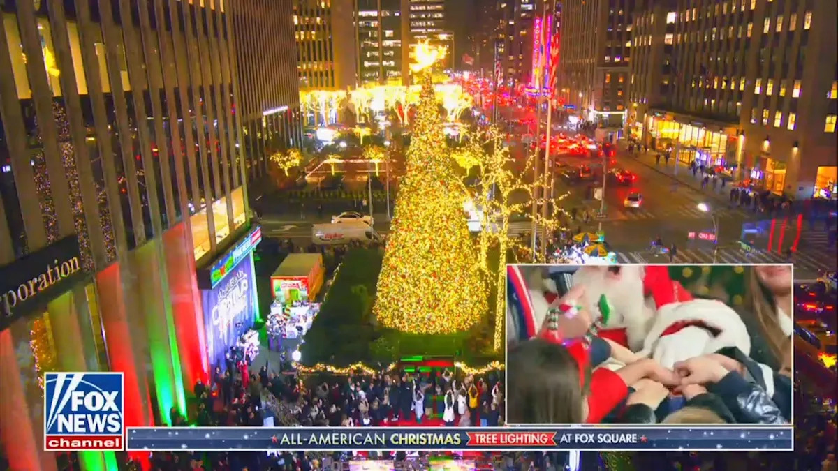Крис Томлин, который выступал на памятном мероприятии Чарли Кирка в сентябре, спел три песни на крыше Fox, в том числе «Silent Night» Стив Дуки, разговаривал с детьми, когда они попросили Санта-Клауса купить игрушки.