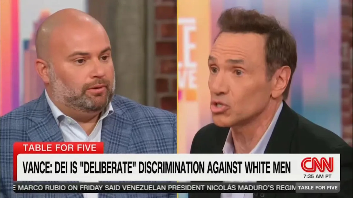 Дискуссия по поводу субботнего стола для пятерых CNN взорвалась из-за утверждения вице-президента Джей Ди Вэнса о том, что политика разнообразия, справедливости и инклюзивности (DEI) привела к «преднамеренной» дискриминации белых мужчин.