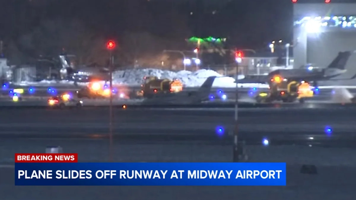 В воскресенье после зимнего шторма на туристическую лихорадку повлиял небольшой самолет, соскользнувший с взлетно-посадочной полосы в аэропорту Чикаго.