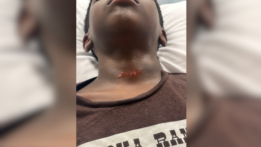 Мать требует ответов после того, как ее 8-летний сын вернулся домой из школы в пятницу с ссадиной на шее.