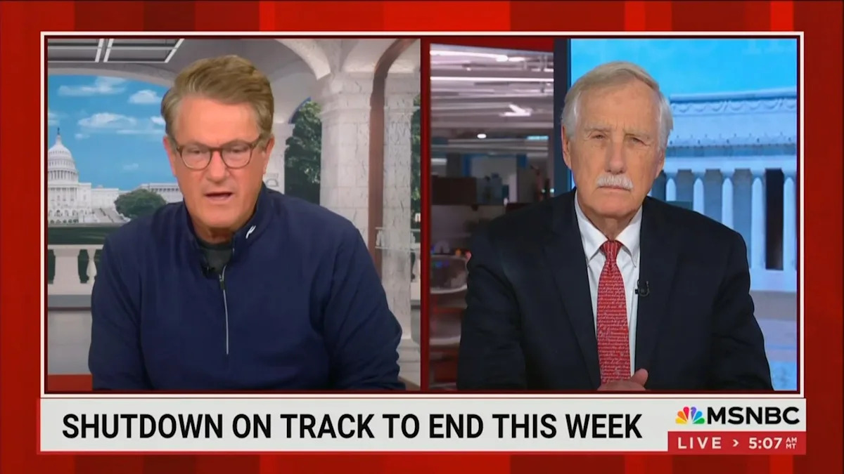 В интервью на утреннем Джо в понедельник сенатор Ангус Кинг, который встречается с демократами, объяснил свой голос, чтобы помочь положить конец закрытию правительства.