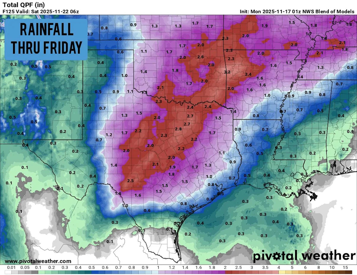 Значительные изменения появляются, вероятно, очень скоро.Модели погоды изображают кластер сильных до сильных гроз, которые, вероятно, будут развиваться в течение середины-второй половины недели, принося сильный дождь, а также шансы на град и сильные ветры, в большую часть Техаса.