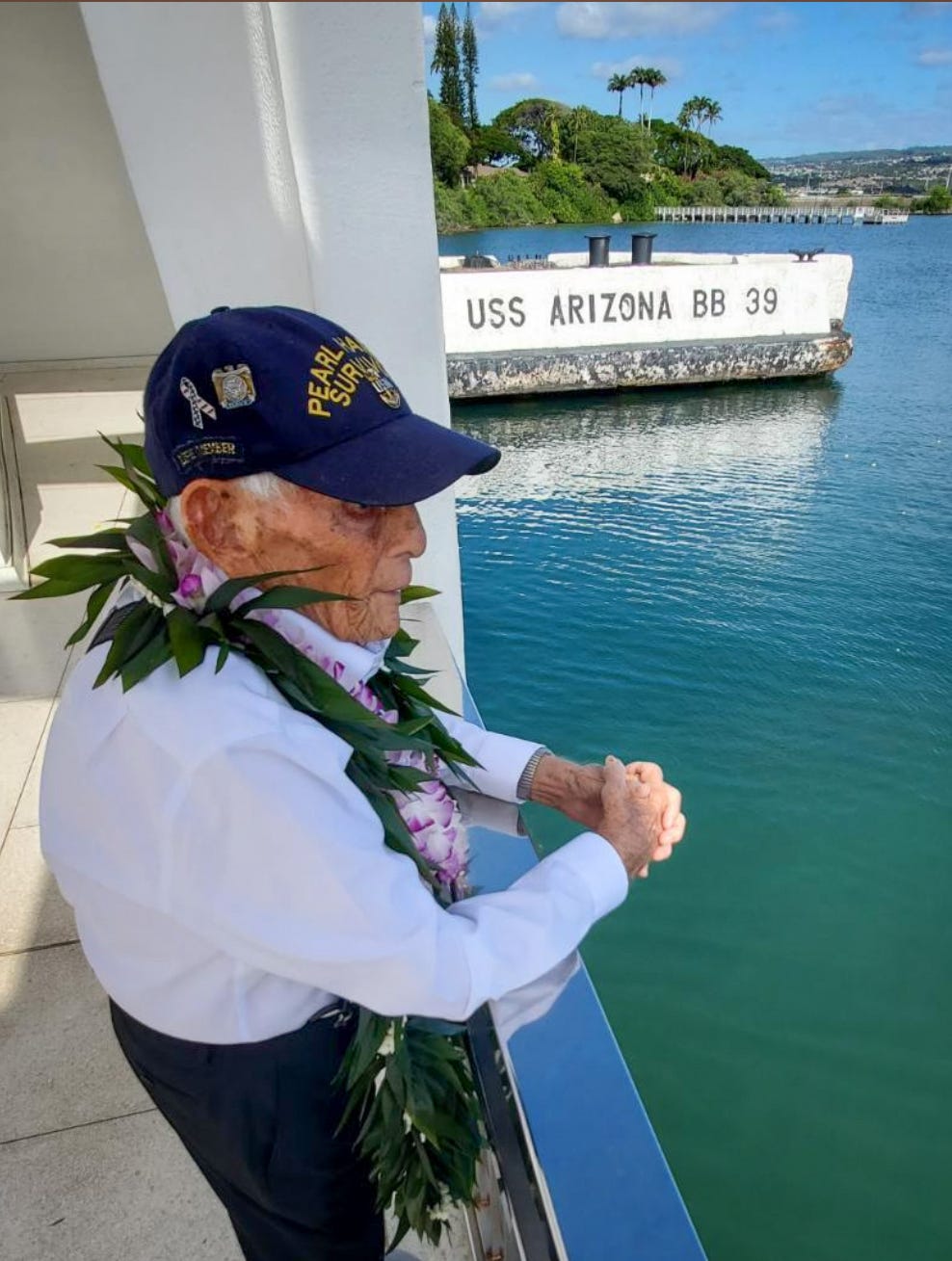 Он поднял американский флаг на лужайке в Эйеа Хайтс, районе к северу от гавани, когда первые японские самолеты пролетели над головой. Он думал, что они были домашней командой, прибывающей на Гавайи с материка, пока не начали падать бомбы.