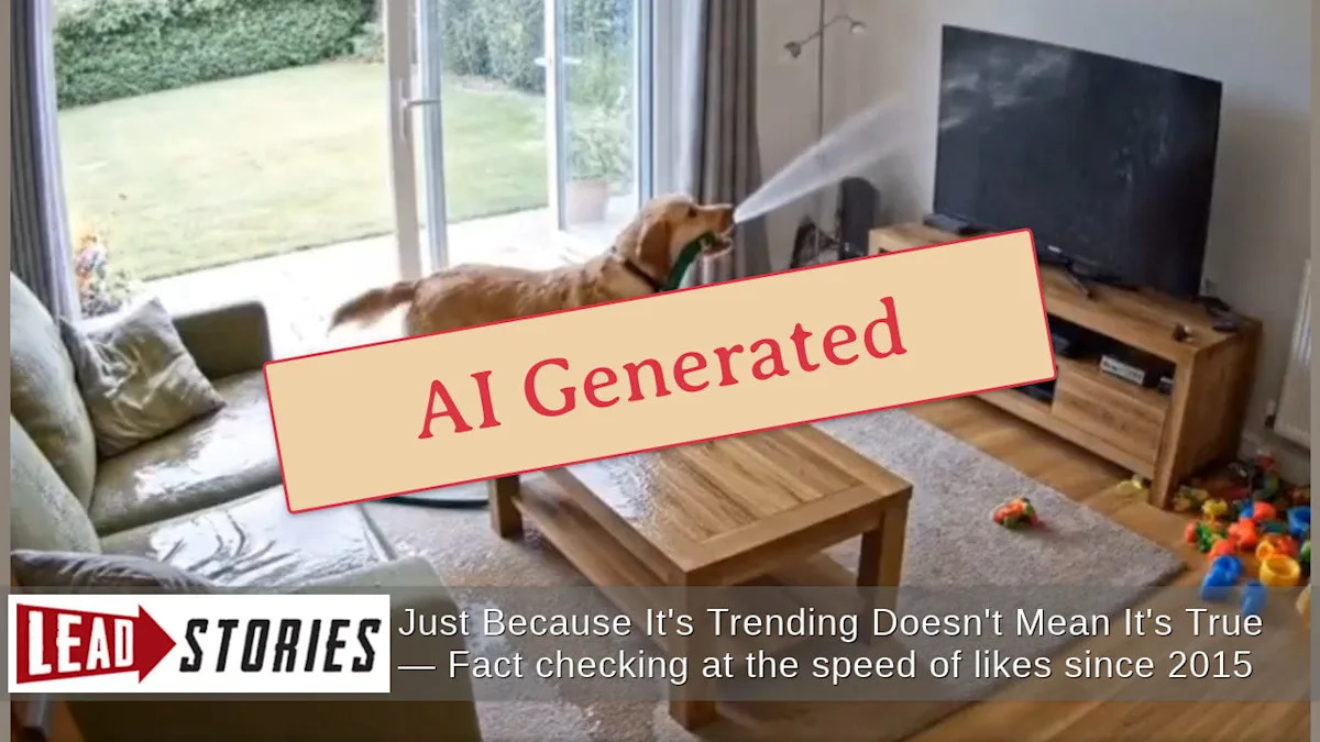 Показывает ли аутентичное видео собаку, которая принесла в дом распыляющий садовый шланг, впитывая все? Нет, это неправда: это видео сгенерировано ИИ. Различия между двумя углами камеры в видео — в домашней обстановке, патио и даже собаке — выдают его. Несколько аналогичных видео, созданных ИИ, показывающих собаку с шлангом, были размещены в социальных сетях, некоторые из них несли отказ от ответственности, что они были сделаны с ИИ.