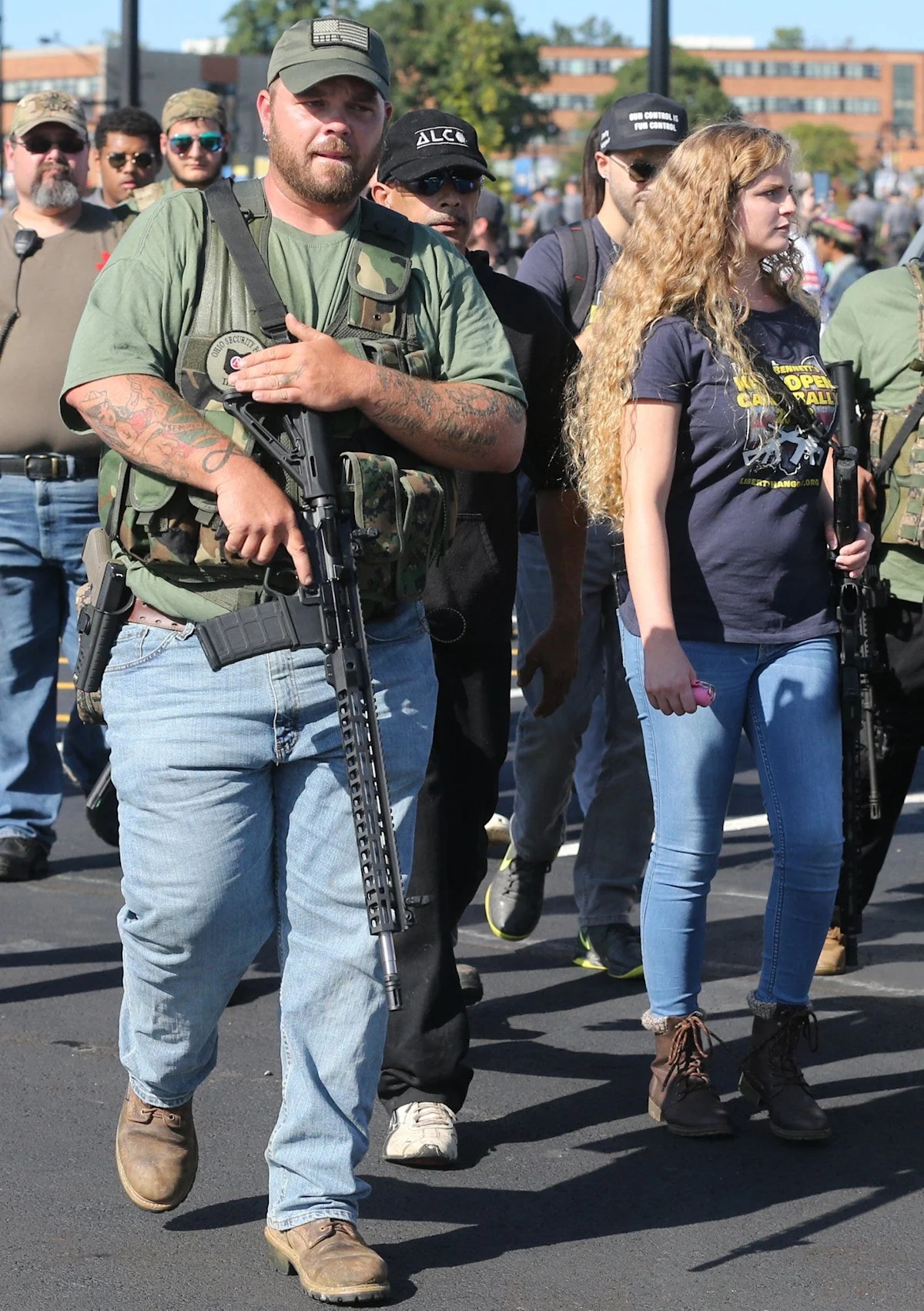 Глава штата Кент привела Кайла Риттенхауса в кампус в апреле 2024 года, чтобы поговорить о правах на оружие, и в ночь, когда он застрелил двух человек в 2020 году в Кеноше, штат Висконсин. Сотни протестующих выстроились на улицах и тротуарах возле студенческого центра Кента в знак протеста против его присутствия. Хотя он утверждал, что студентам должно быть разрешено носить оружие в классы, некоторые протестующие заявили, что оружию нет места в кампусах колледжей.